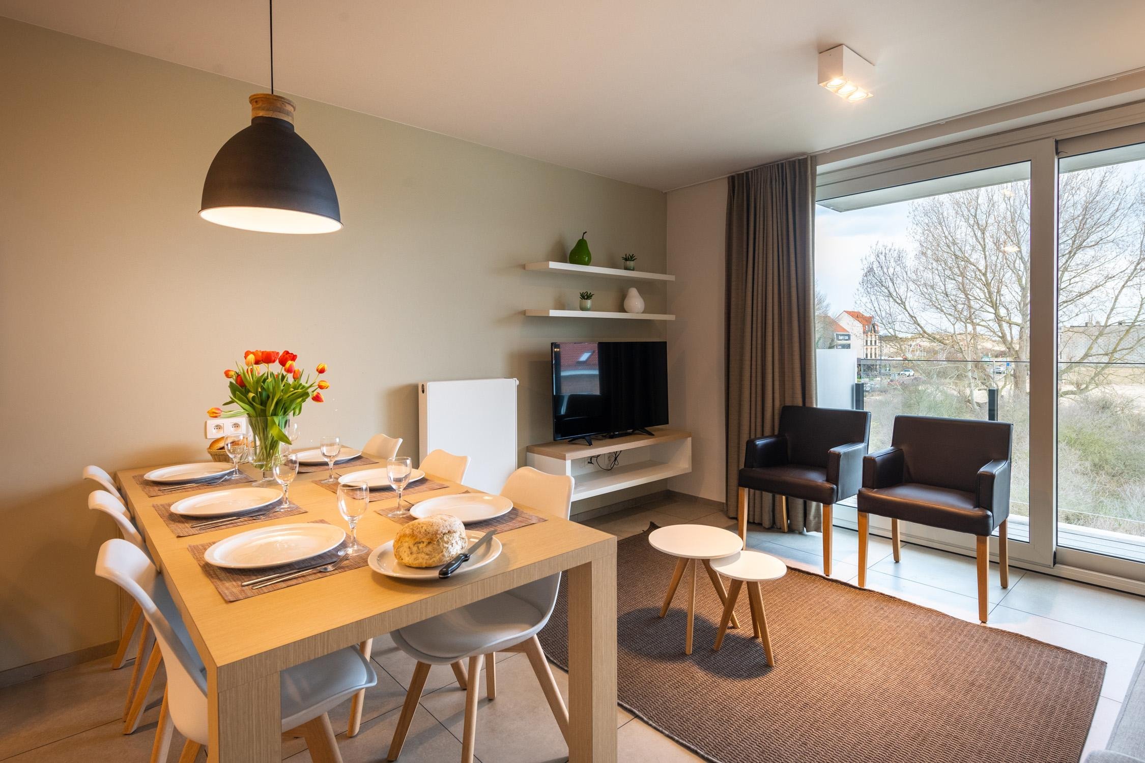 Diese trendige 2-Schlafzimmer-Wohnung bietet Platz für 4 bis 6 Personen. Alle unsere Unterkünfte beinhalten einen zusätzlichen Hotelservice.